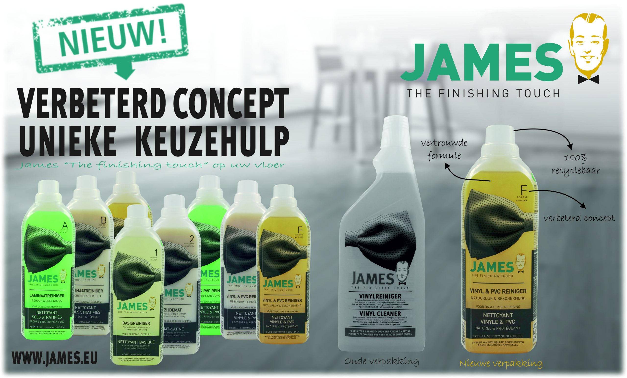 Ook komt James met een totaalprogramma voor de consument, bestaande uit reinigingsmiddelen voor (semi-) harde vloeren zoals vinyl, linoleum, marmoleum, rubber en laminaat.